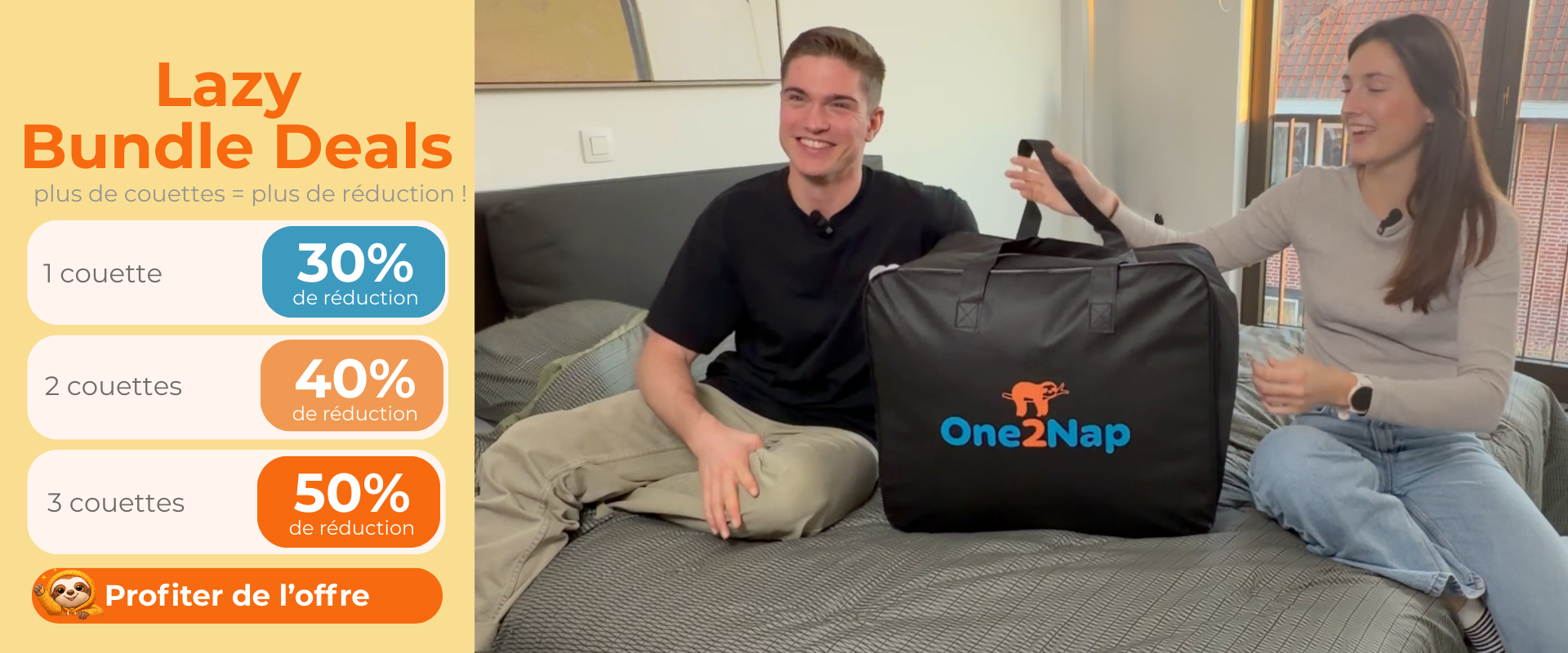 Comparez One2Nap à une couette classique et découvrez comment dormir, se laver et faire son lit deviennent soudainement beaucoup plus faciles (et plus amusants).